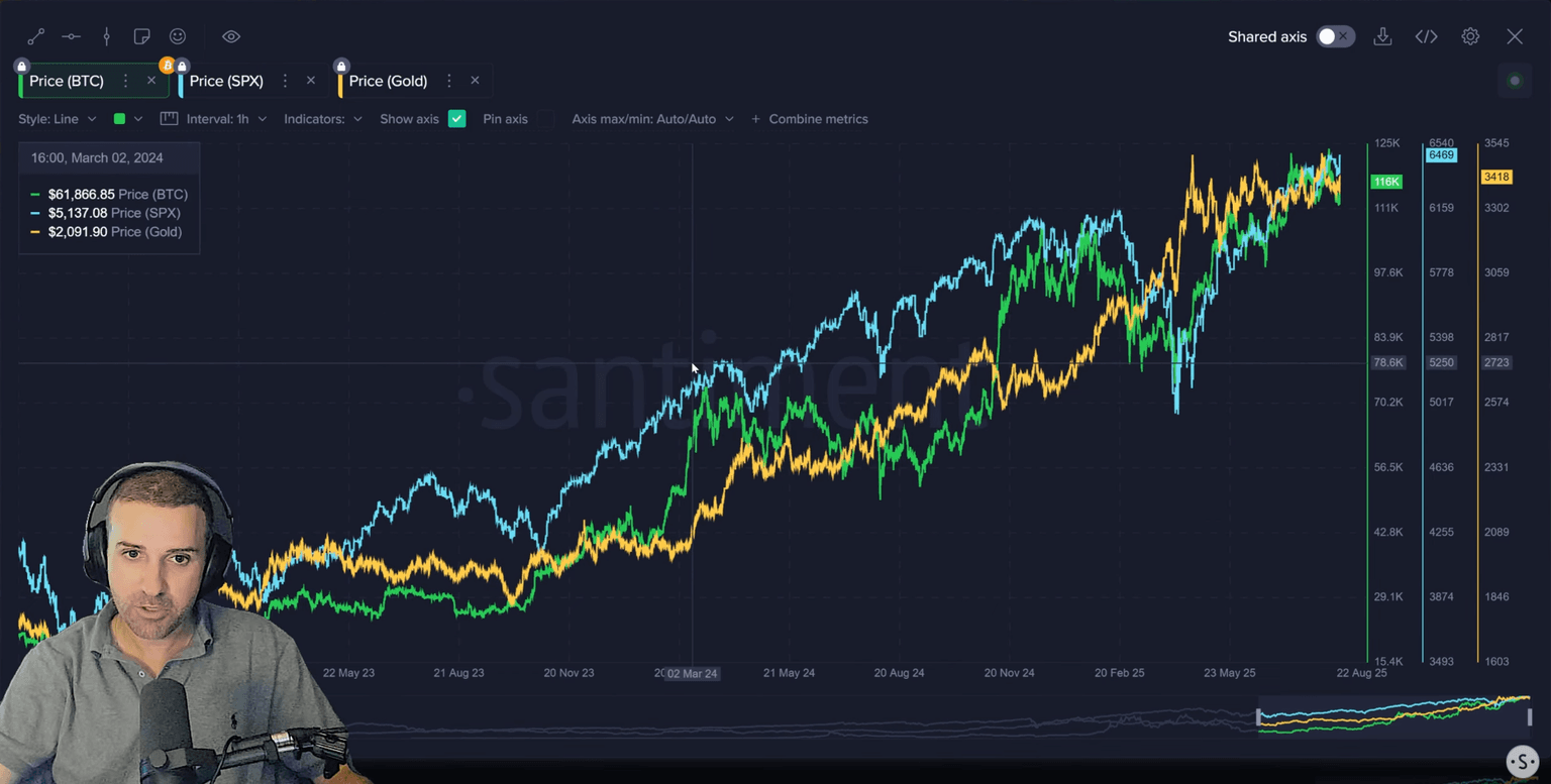 The connection between crypto and traditional finance is stronger than ever. Brian pointed out that the S&P 500 also made a new all-time high, reinforcing the bullish sentiment. Since early 2022, crypto has become highly correlated with global stock markets. Charts shown during the stream revealed that Bitcoin, the S&P 500, and even gold have been moving up in tandem in response to dovish news from the Fed.
