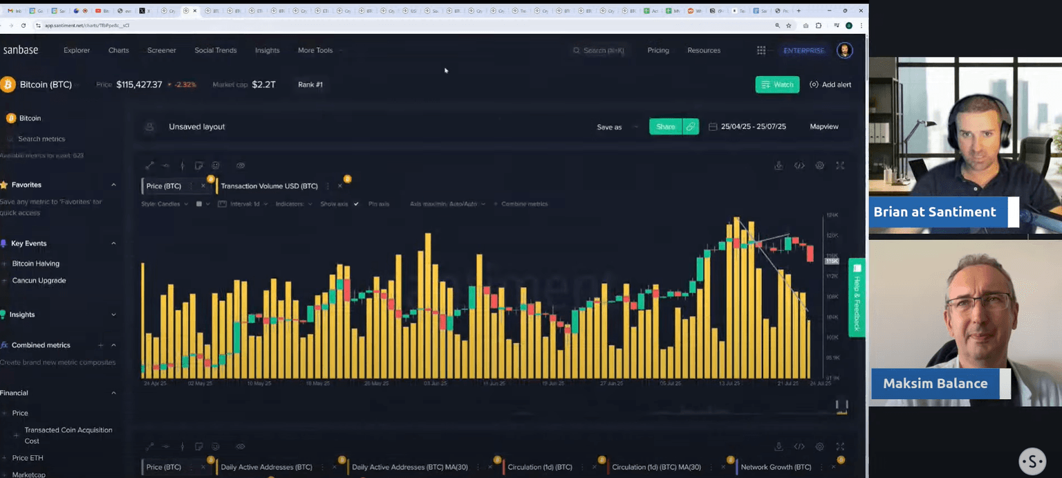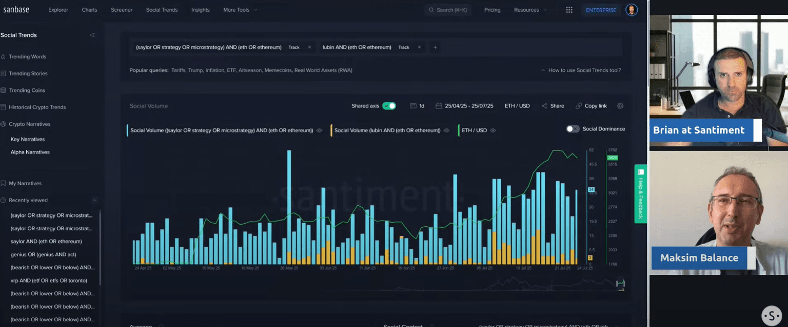 The conversation started by noting a significant shift in market focus. While Bitcoin has been in the spotlight, attention is now moving toward Ethereum. Brian and Maksim observed that this isn't just a feeling; the on-chain and social data confirm a growing interest in ETH. This change in sentiment often precedes major price action, making it a critical trend to watch.