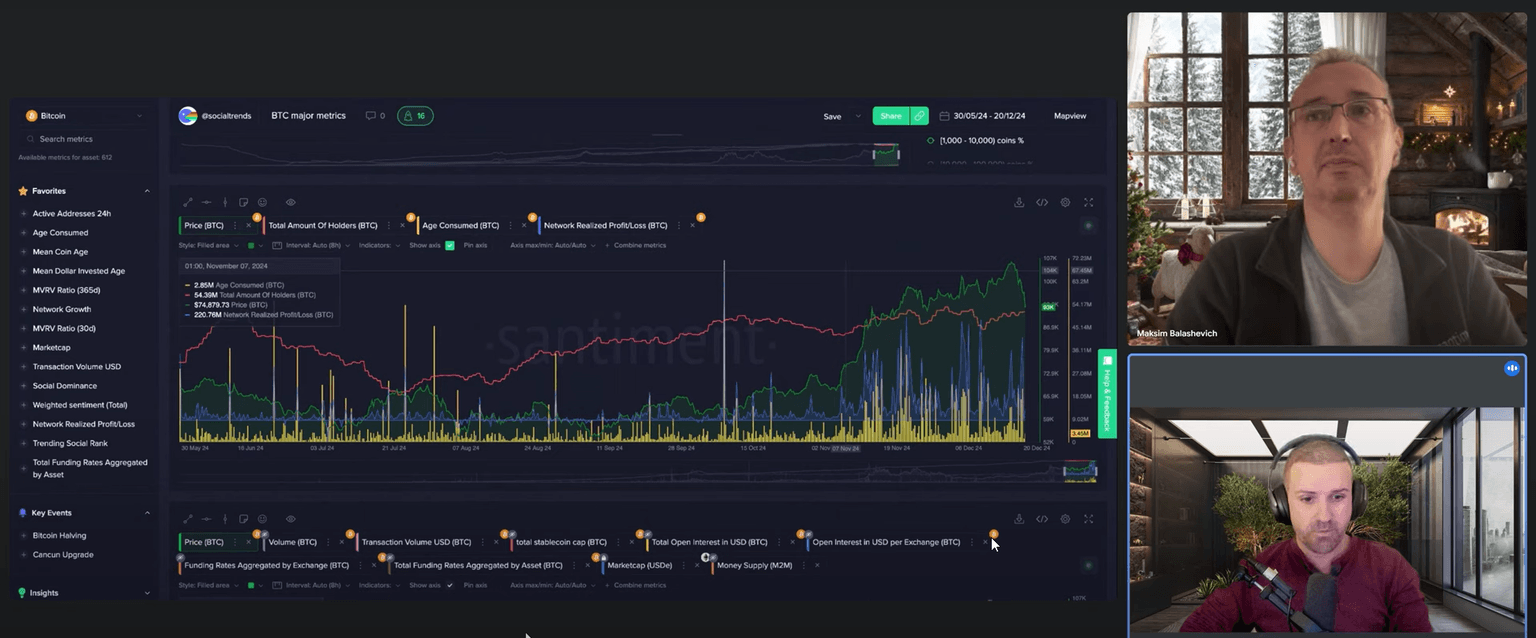 In this week's crypto market update, Santiment's experts Brian and Maksim dissect recent market movements and share valuable on-chain insights. Following Bitcoin's retreat from recent highs above $100,000, they explore divergence patterns, social sentiment, and key metrics that could signal where the market is heading. Their analysis combines technical indicators with social metrics to provide a comprehensive view of the market.