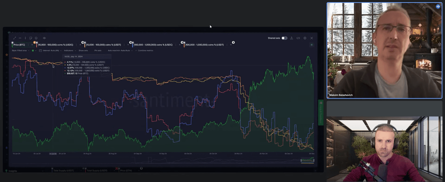 Maksim introduced the concept of analyzing the behavior of "dolphins and sharks"βholders of significant stablecoin amounts. Their accumulation or deployment of stablecoins can signal market opportunities or caution. This behavior, combined with divergence analysis, provides a comprehensive view of market conditions.