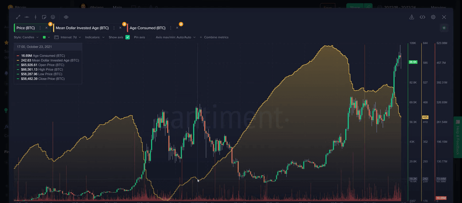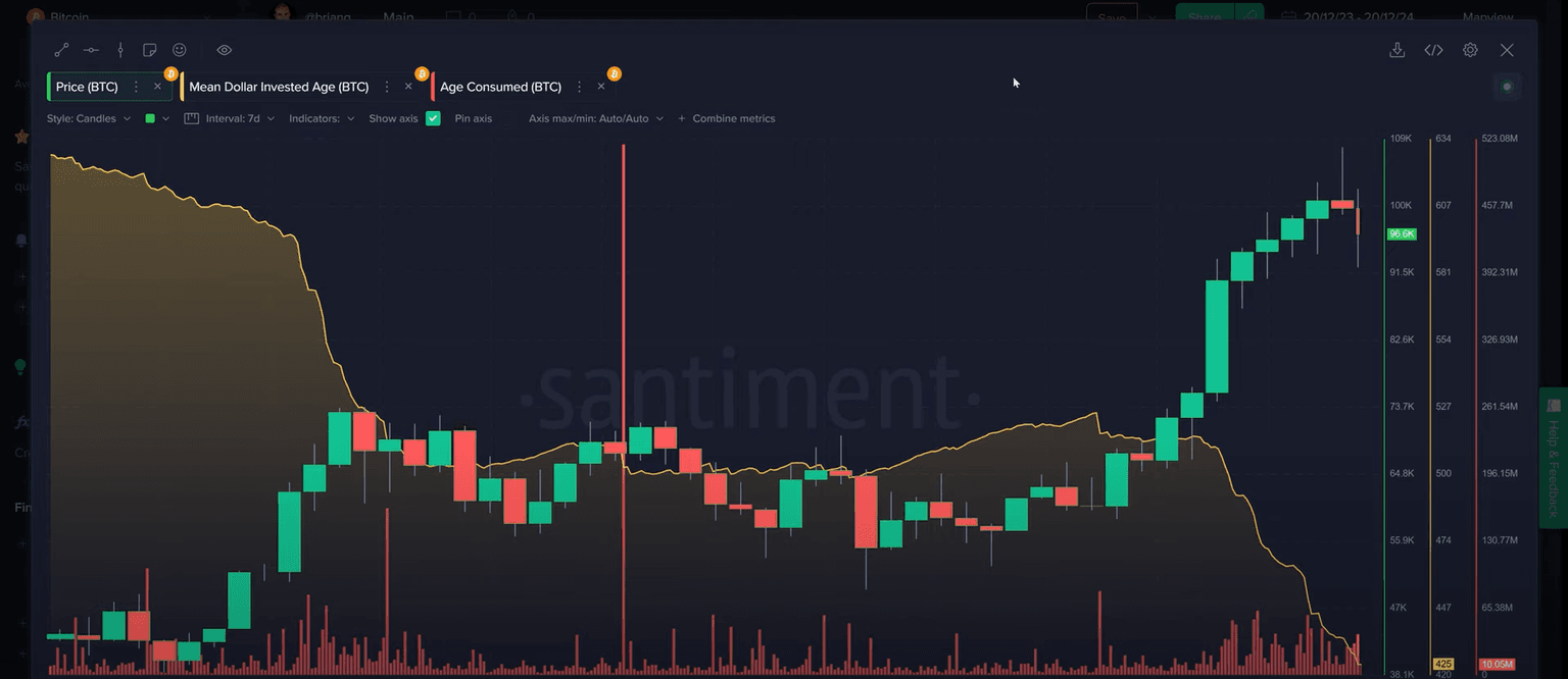 Despite short-term volatility, long-term indicators remain positive. The decline in mean dollar invested age suggests active coin movement, supporting a healthy market cycle. This long-term perspective provides reassurance amidst current market fluctuations.