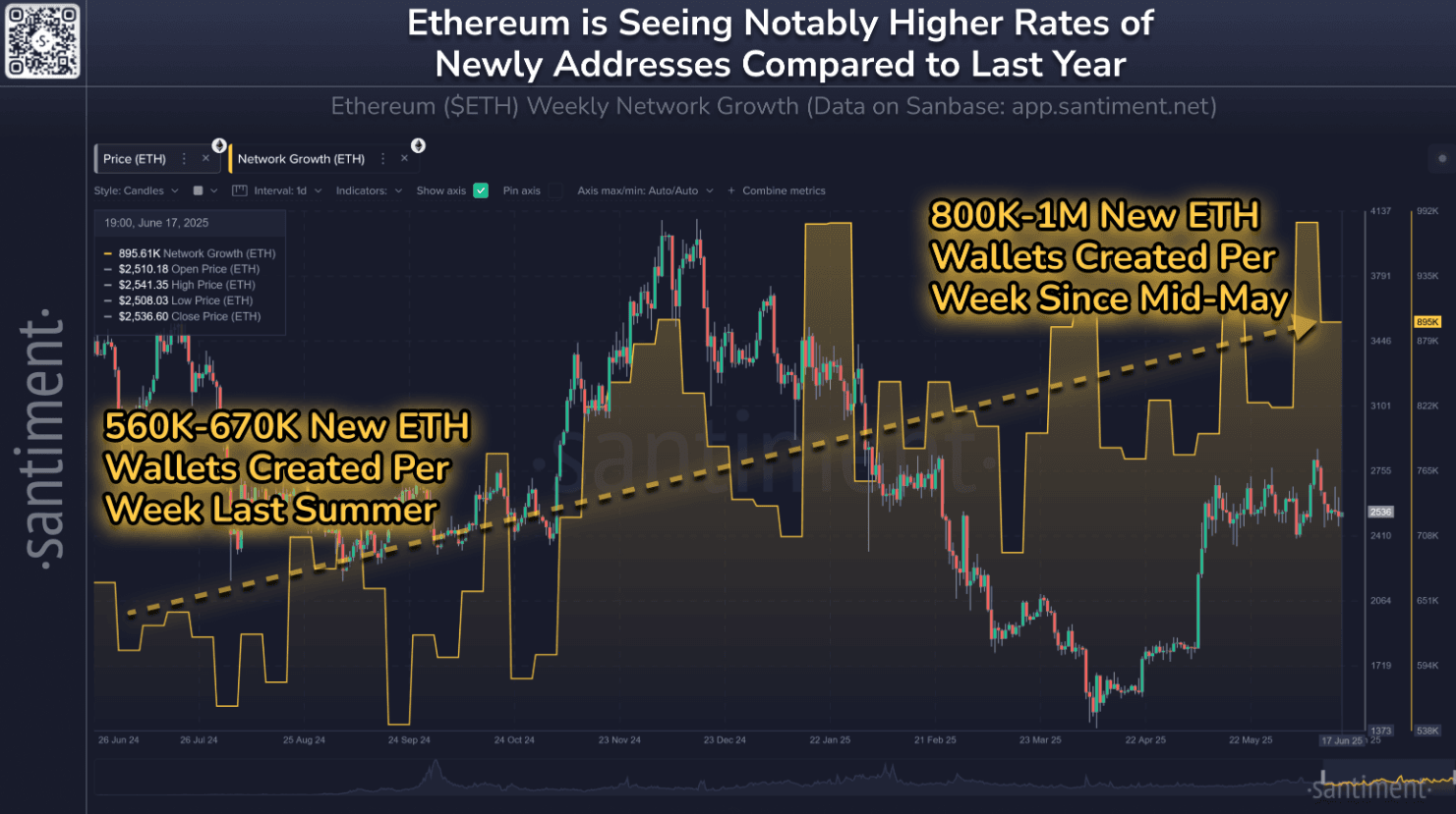 Actionable Tip: Look past price and analyze Ethereum's weekly Network Growth. Sustained high levels of new address creation indicate a healthy and expanding ecosystem, which is a strong fundamental signal for long-term investors.