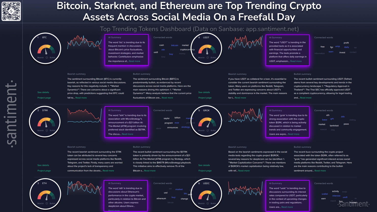 Keep an eye on which tokens are trending and driving markets on Santiment at any time on our Trending Tokens Dashboard!