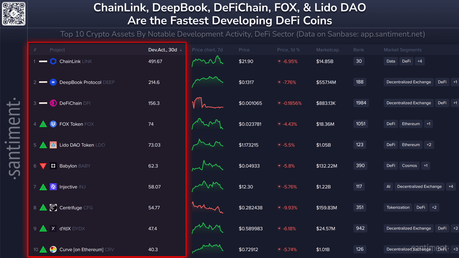 π§βπ» Here are crypto's top 10 DeFi projects by development. Directional indicators represent each project's ranking positioning since last month: β‘οΈ 1) ChainLi