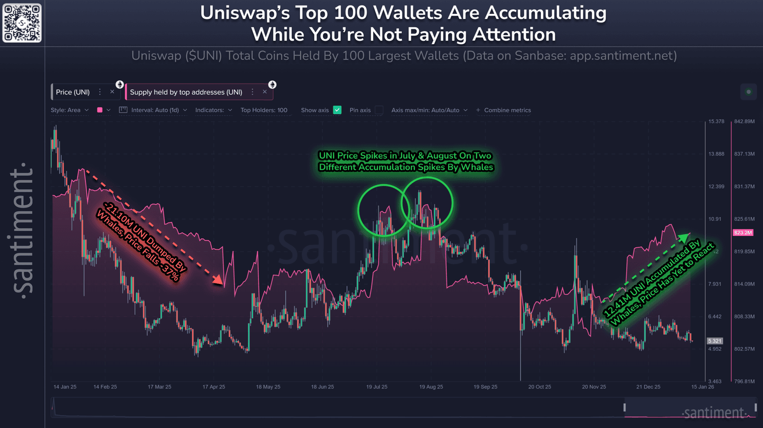π¦ You may not have Uniswap on your radar at the moment, but the 100 largest wallets have accumulated 12.41M $UNI in the past 8 weeks. Historically, these group