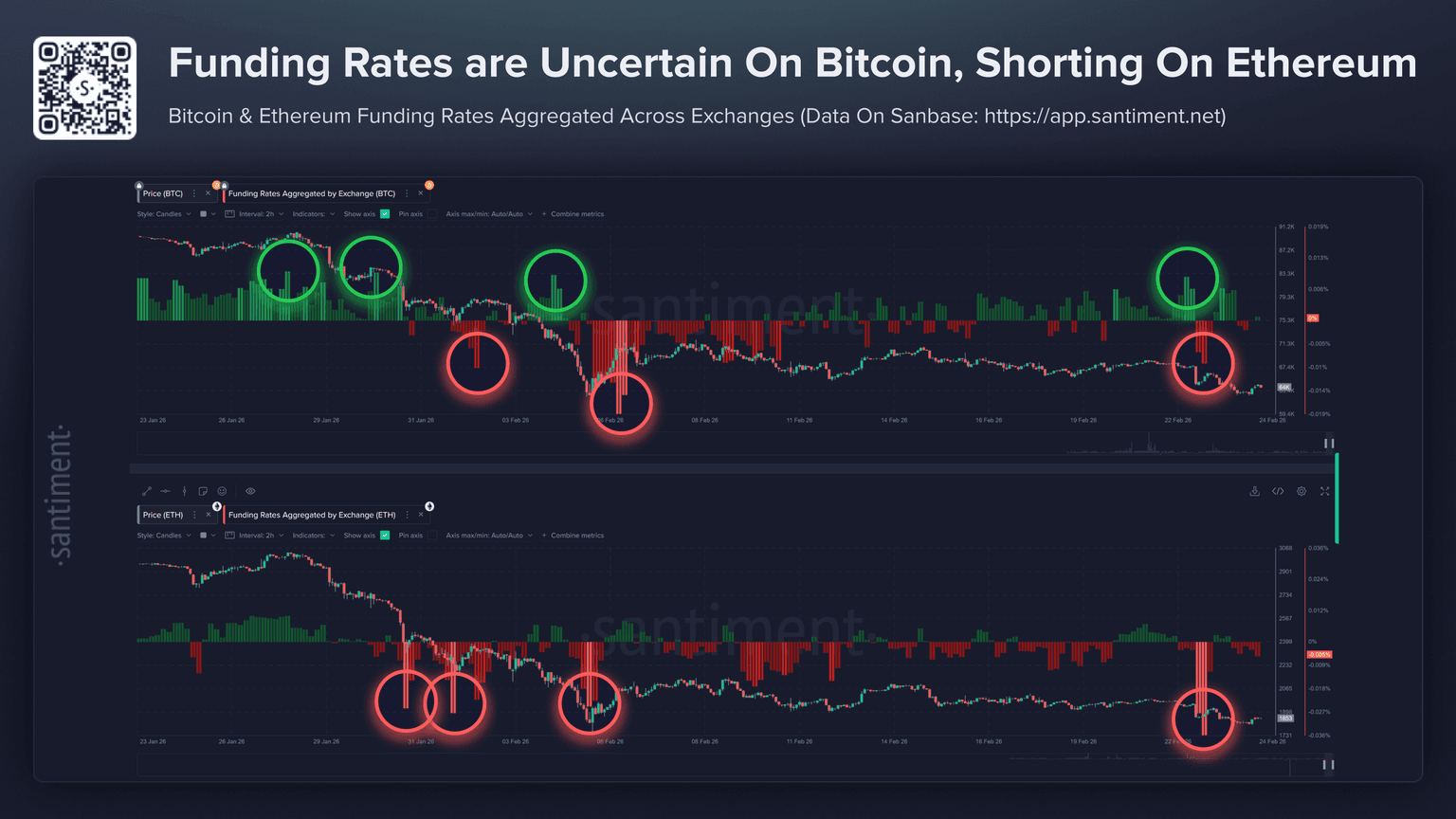 π Across exchanges, funding rates have turned mixed toward Bitcoin and mild shorting toward Ethereum. We will see a sustained crypto rebound when $BTC shorts b