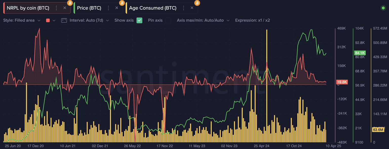 Similarly, NRPL shows the highest values in the middle of the rally, indicating market participants actively taking profits, and then later as the top approaches they stop moving their coins, preferring to hold onto them (too much confidence and greed).