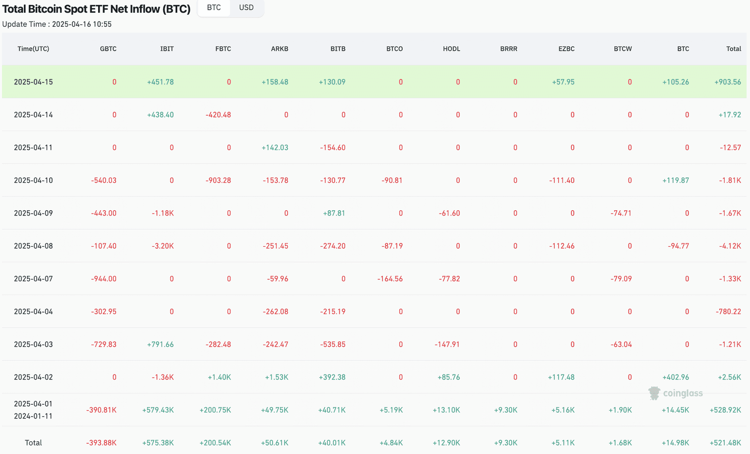 Another big player in the space is obviously the ETFs, which since their inception had a total net inflow of just over 520 000 BTC.
