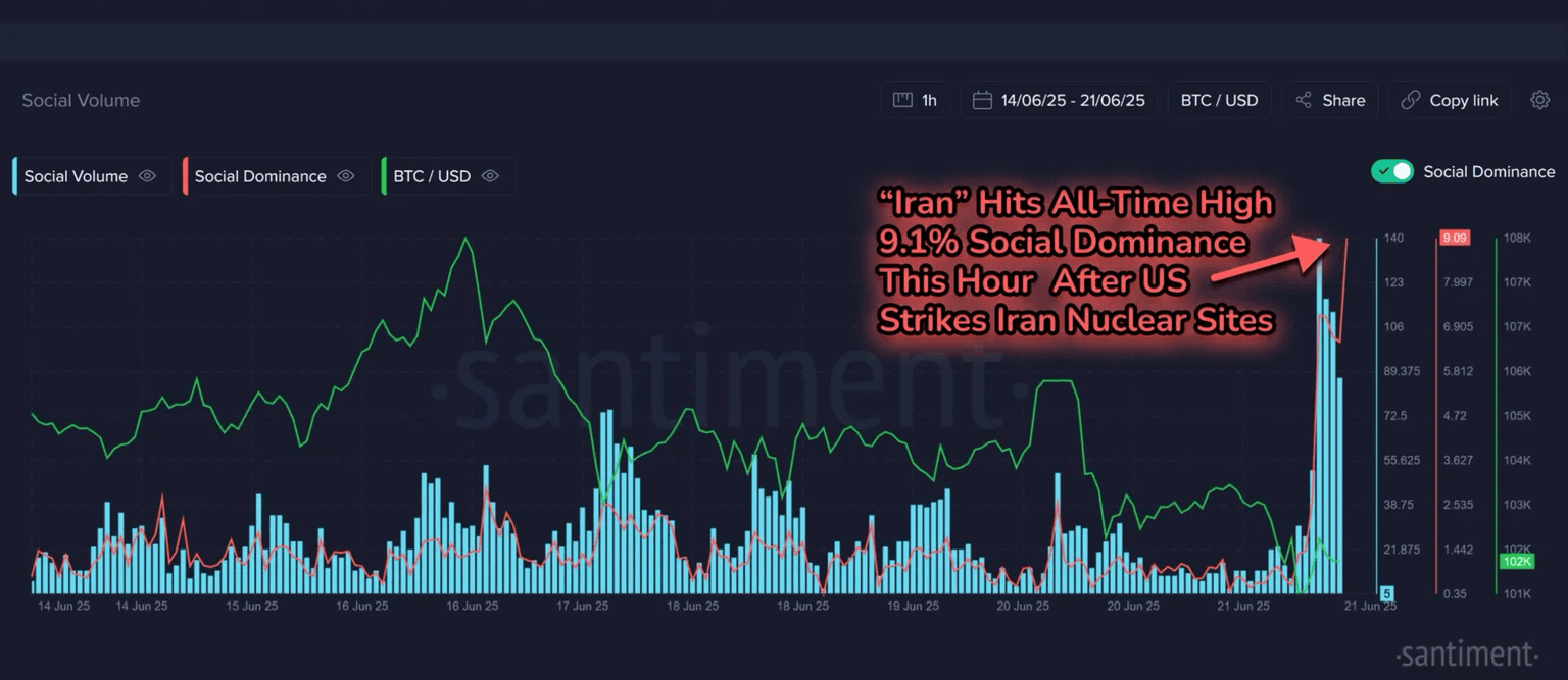 This news triggered a wave of attention on social media, especially among cryptocurrency traders. The word “Iran” spiked in mentions, according to data from Santiment. But interestingly, Bitcoin prices didn’t move much right away. One possible reason is that the strikes happened late at night on a weekend in the US, when trading volume tends to be lower. Still, investors were watching closely, knowing that events like this can often lead to big swings in the market if the situation worsens.