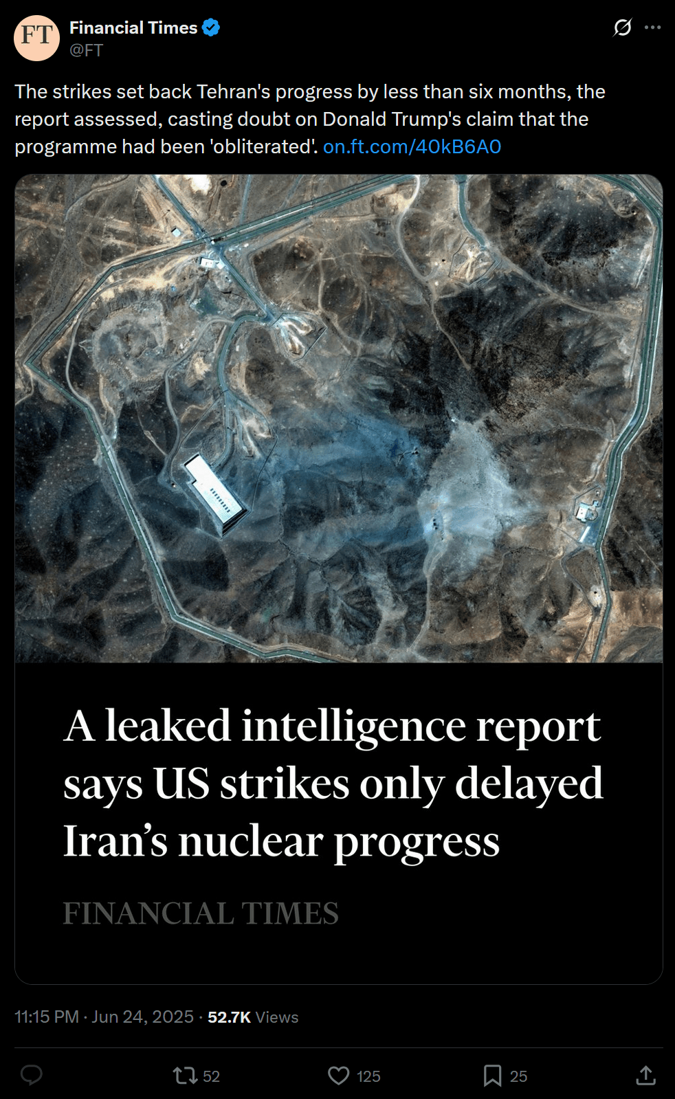After days of back-and-forth attacks, a ceasefire between Israel and Iran was declared and, surprisingly, seems to be holding for the time being. Both sides have claimed victory, even though the situation remains tense. Trump declared the war over, saying the US strikes had destroyed Iran’s nuclear capabilities. However, leaked intelligence reports suggest the facilities were only set back a few months, not completely destroyed.