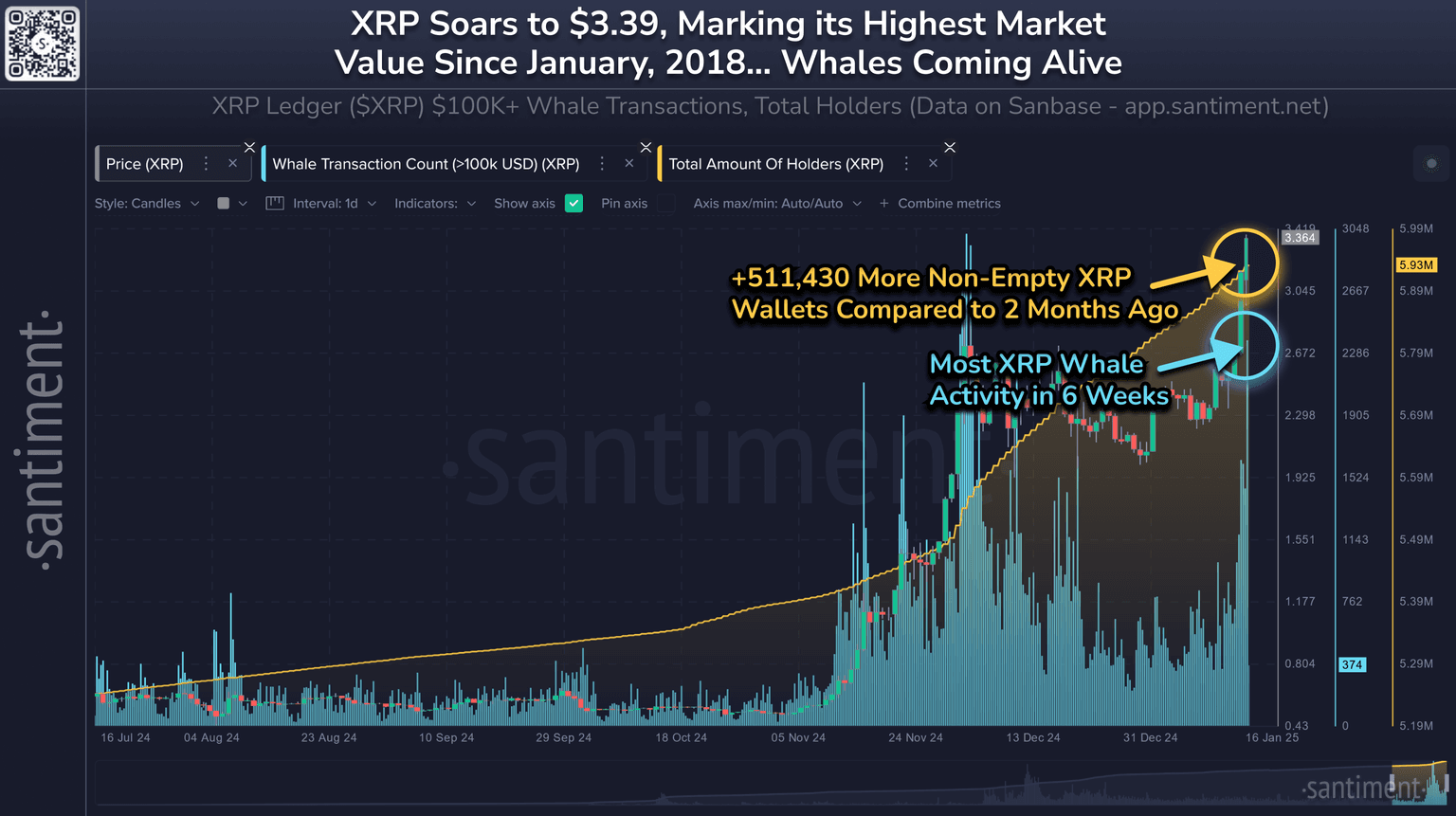 XRP On the Move Again, Breaching a 7-Year High on Climbing Wallets and Whale Activity