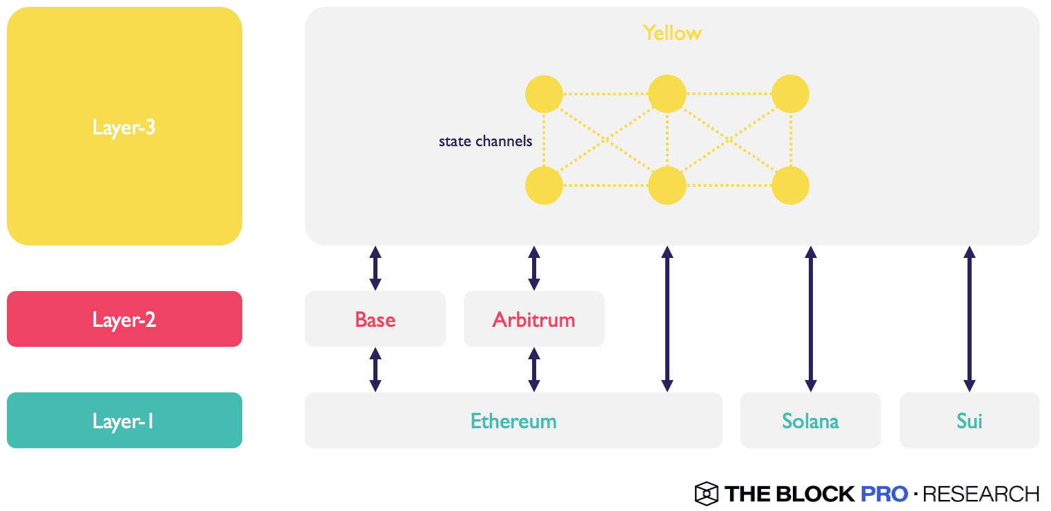 At its core, Yellow is a Layer-3 mesh network composed of state channels, designed to abstract away the underlying blockchains. It provides a unified virtual ledger where applications interact seamlessly across chains.
