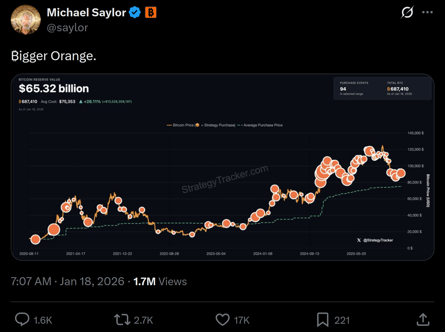 Against a backdrop of weakening sentiment and cautious capital flows, corporate Bitcoin accumulation stood out. Michael Saylor resumed aggressive buying in mid to late January after a brief slowdown around the start of the New Year. Most of the capital came from selling MicroStrategy (MSTR) shares, with roughly 10–15% raised through STRC, which continued to trade near or above $100, signaling strong investor demand.