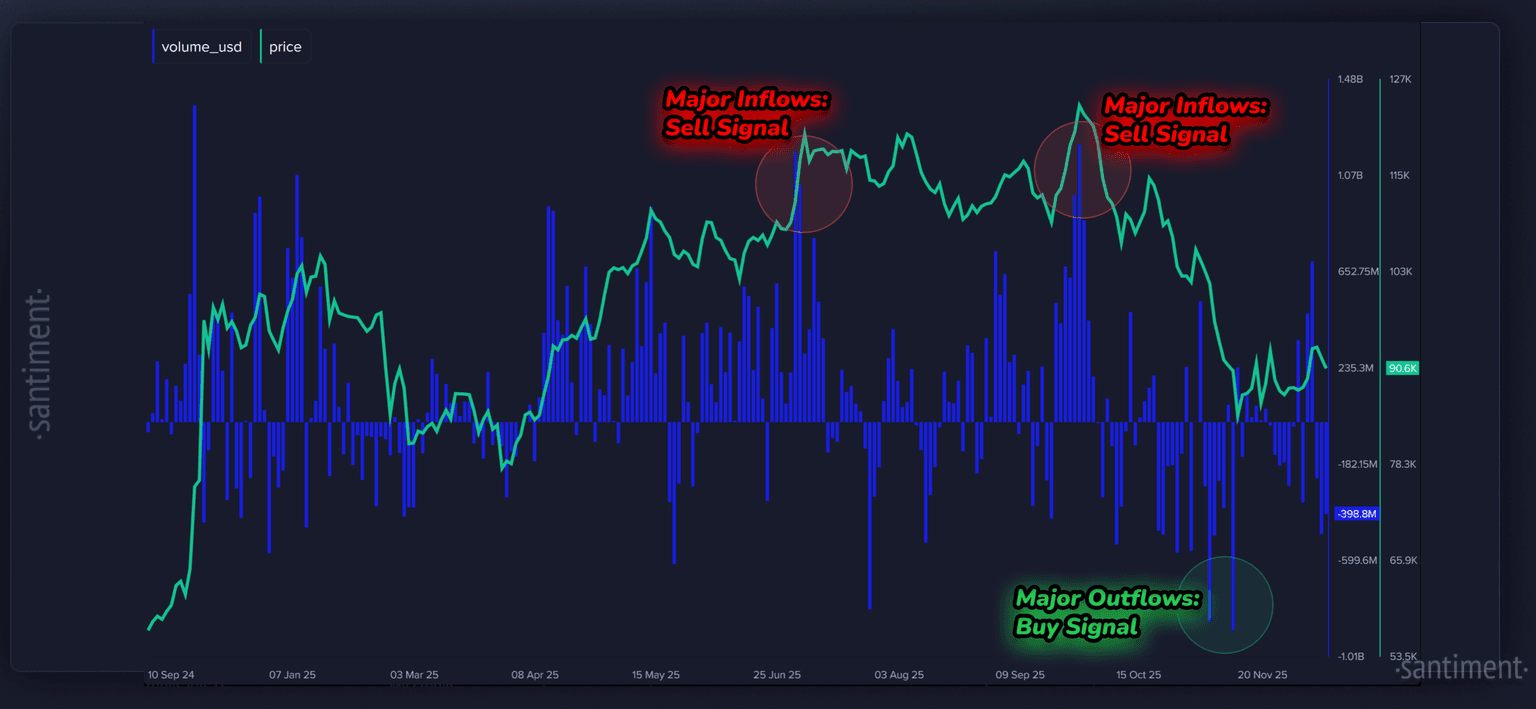 Bitcoin ETF Inflow & Outflow. Source: Santiment