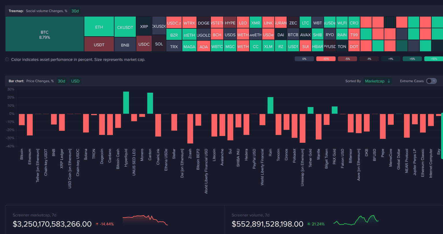 7-Day Price and Social Volume percentage changes, as of January 31, 2026. Source: Santiment
