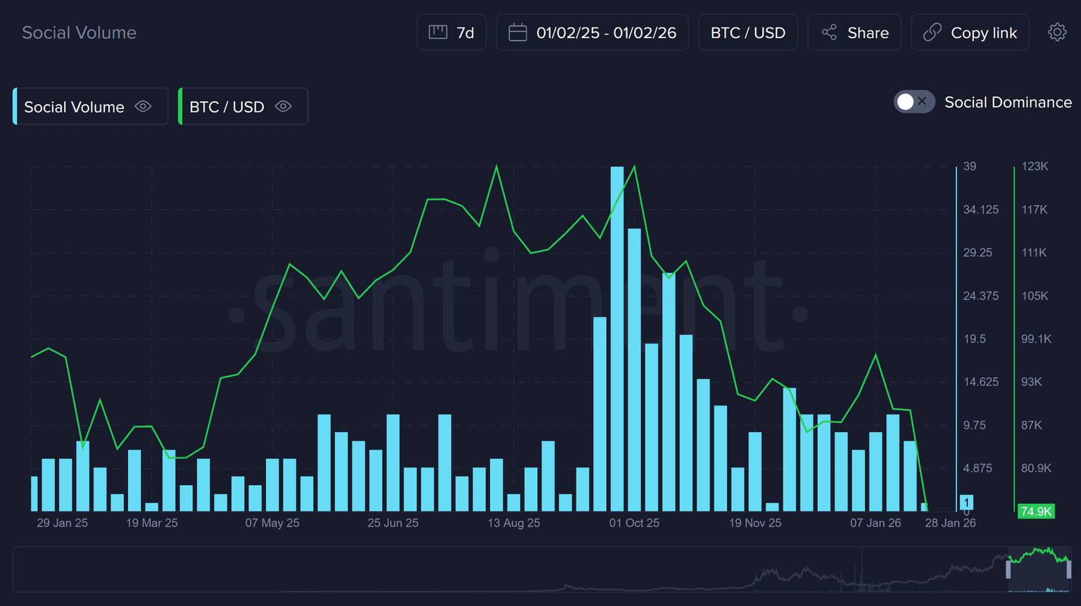 As Bitcoin and altcoins retraced, positive commentary has rapidly shrank. More and more traders have been hopping to other investment opportunities that appear more appealing to them, such as gold and silver. Each lower high in price has been met with reduced enthusiasm, and by late January, bearish narratives clearly dominated online discussion. This alignment between falling prices and weakening sentiment reflects how reactive social commentary often is during periods of uncertainty.