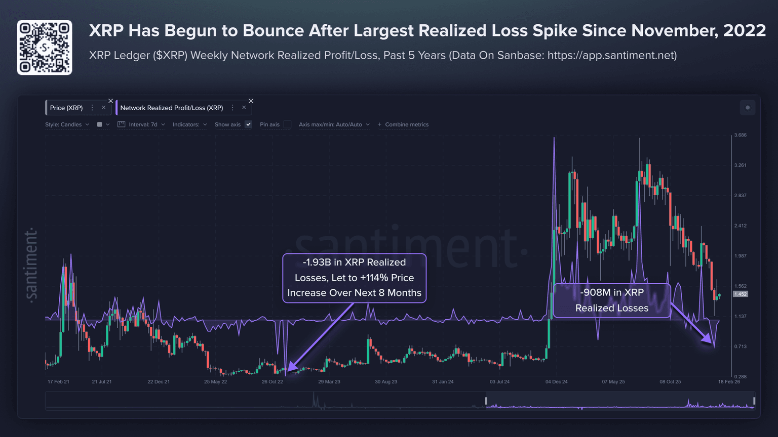 📉 BREAKING: XRP has seen its largest on-chain realized loss spike since 2022. When the previous weekly milestone of -1.93B in realized losses occurred 39 months ago, $XRP proceeded to jump +114% over the next 8 months.