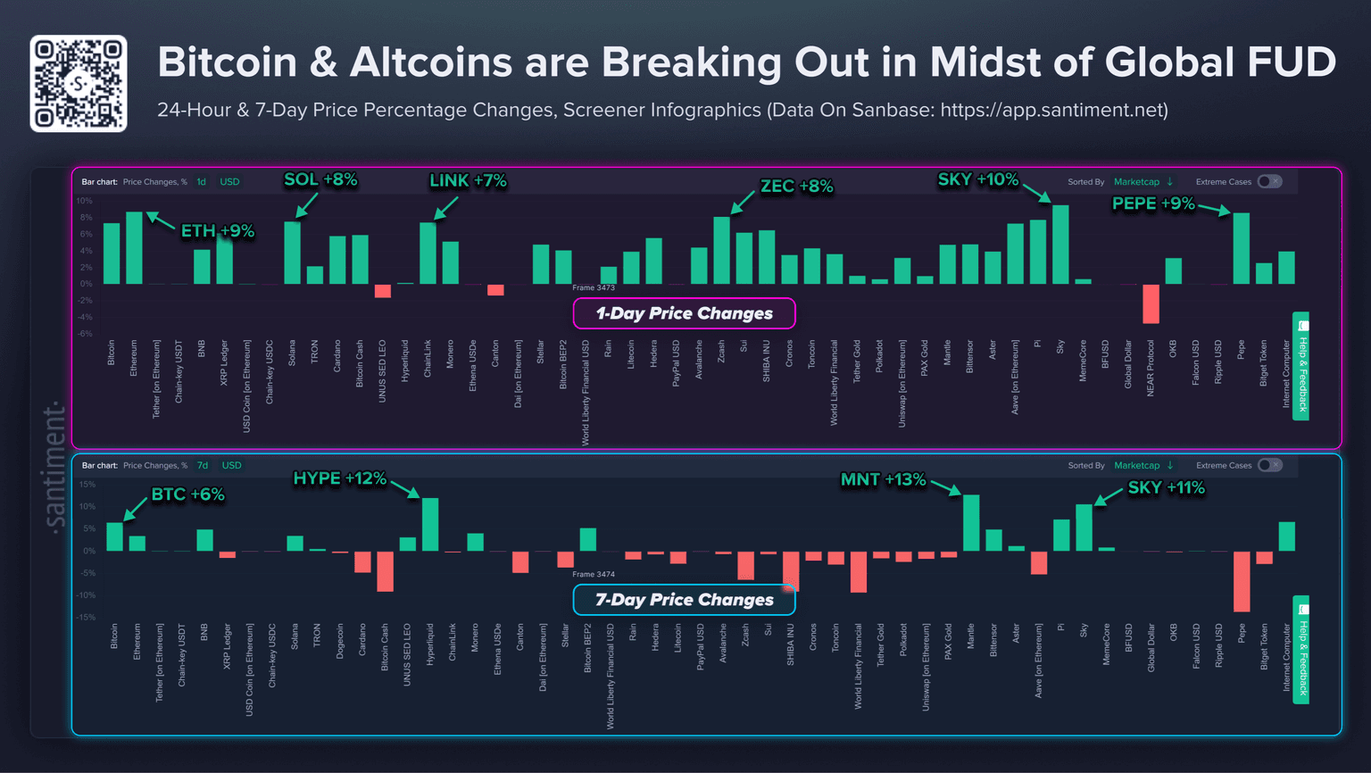 📈 Bitcoin has rebounded back to 2,200 again. Several assets like Solana (+9%), Chainlink (+7%), and Pepe (+9%) are also seeing major 1-day price jumps.