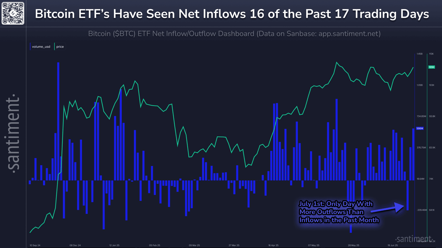Visit Santiment's dashboard for yourself and track the latest funding flows corresponding with the all-important Bitcoin ETF's.