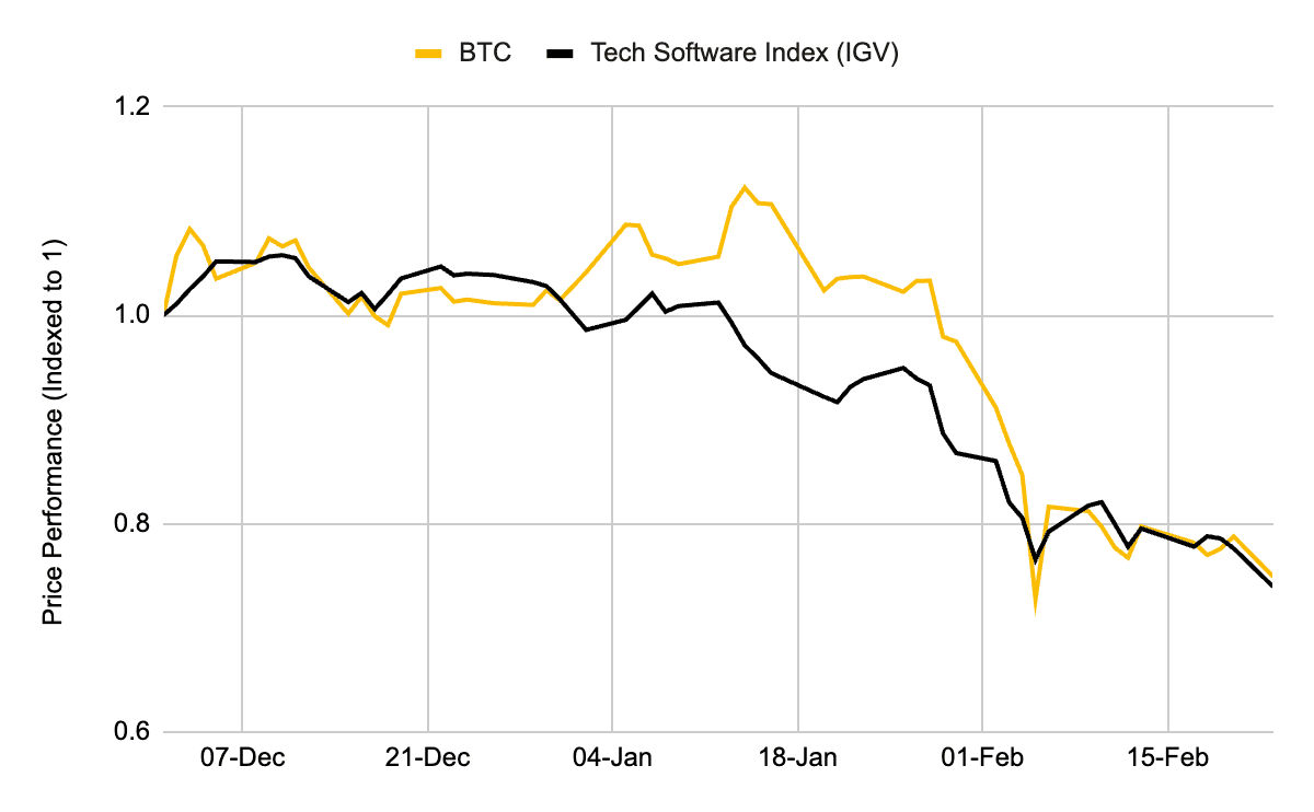 - AI가 기존 소프트웨어 산업을 붕괴시킬 것이라는 시장의 공포는 과장된 측면이 있습니다. 소프트웨어 주식이 견고한 바닥을 다지고 나면, 기술주와 비트코인 간의 기계적인 동조화 현상도 옅어질 것입니다. 이번 주 발표된 엔비디아의 실적과 Anthropic의 기업용 업데이트는 이러한 방향으로 나아가는 의미 있는 발걸음입니다.