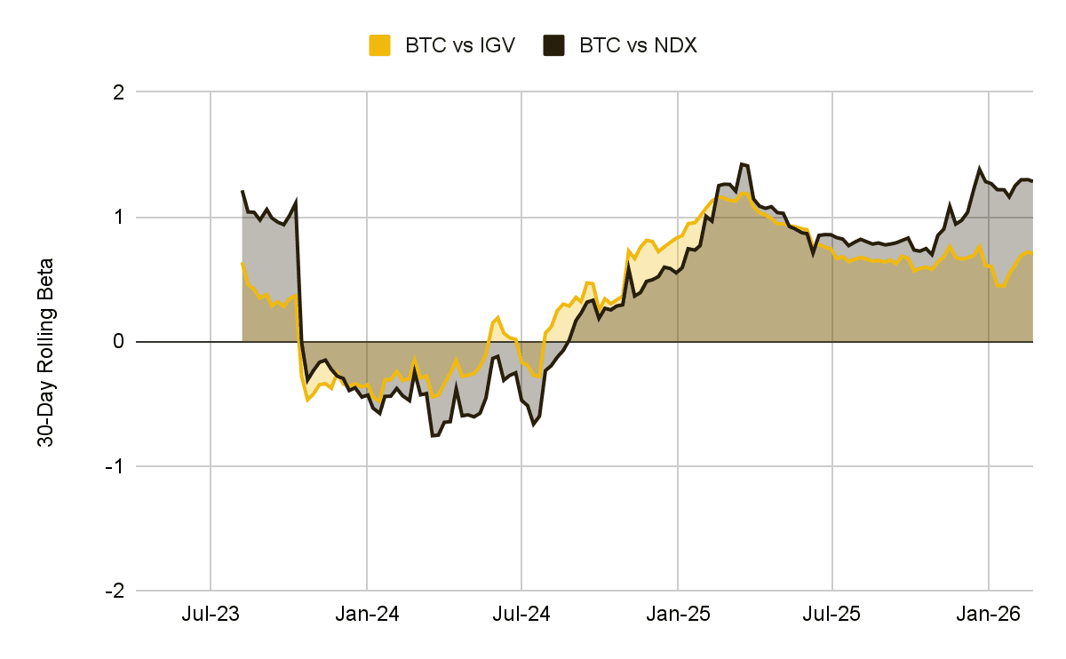 - AI 잠식 우려 진정: 소프트웨어 주식이 바닥을 다지면 기술주-BTC 간 기계적 동조화가 약해집니다.