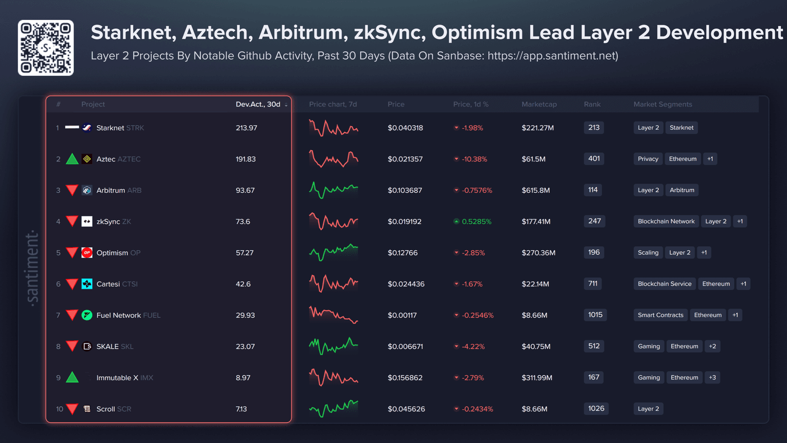 🧑💻 Here are crypto's top Layer 2 projects by development. Directional indicators represent each project's ranking rise or fall since last month: ➡️ 1) Starkn