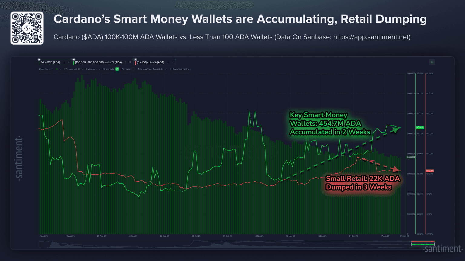 🧠 Cardano's smart money wallets have been quietly accumulating while the token's price is suppressed.